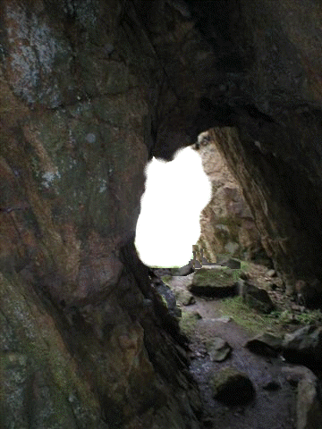 They went to the entrance of the cave and looked out.